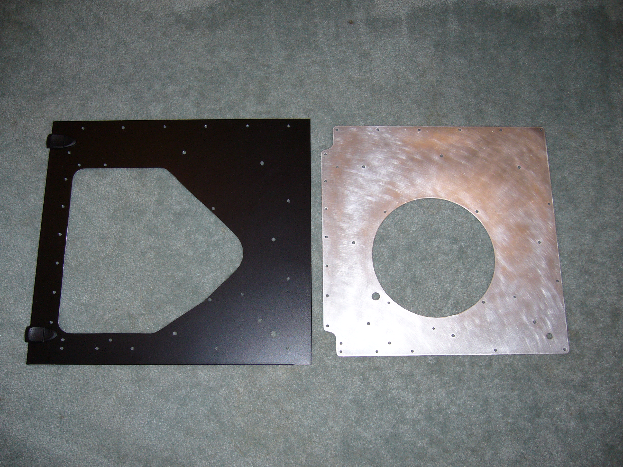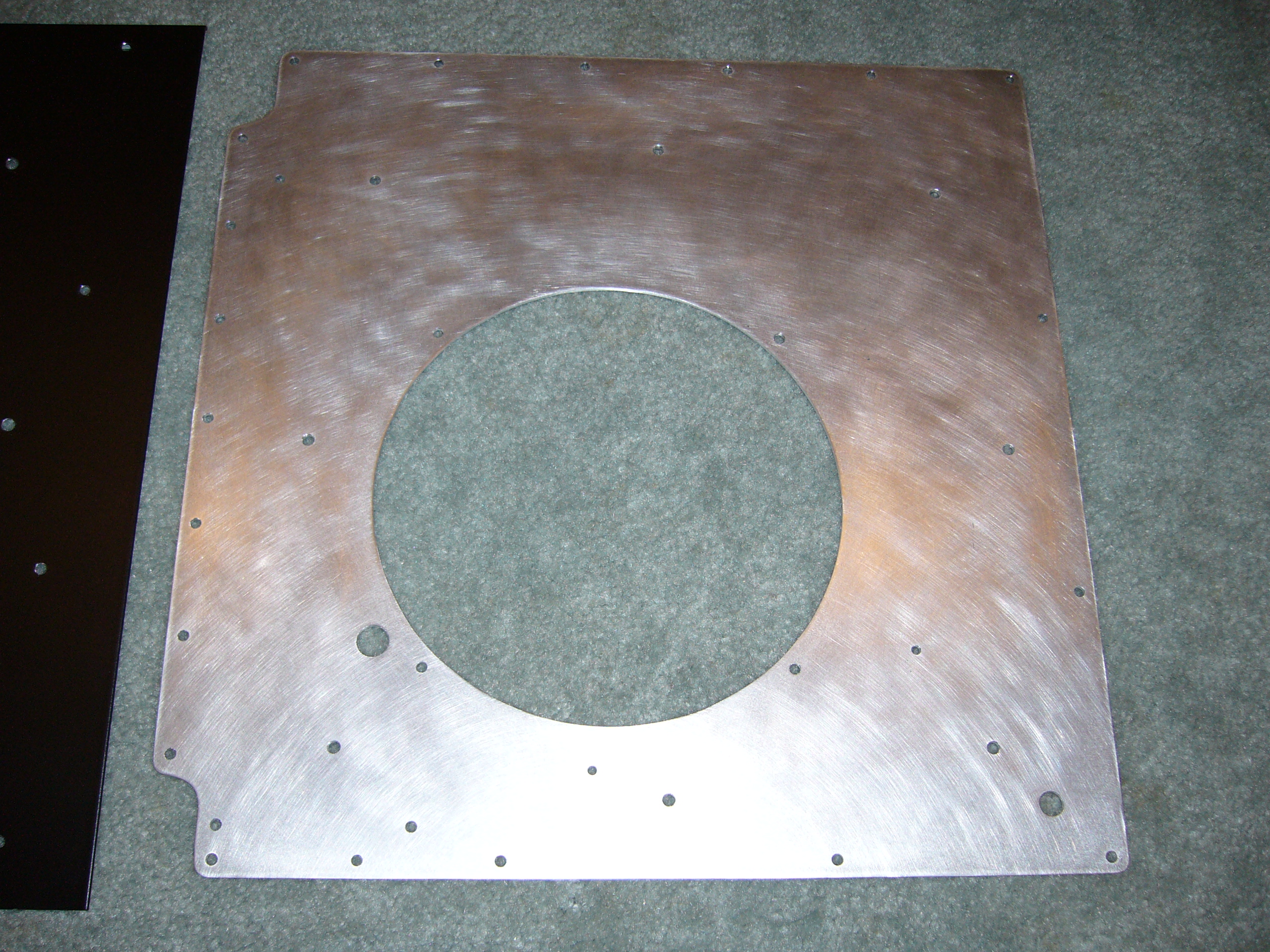 The complete reinforcing plate, a piece of .090" 7075. I got a bit overenthusiastic with the number of screws, but then I only had to apply them
