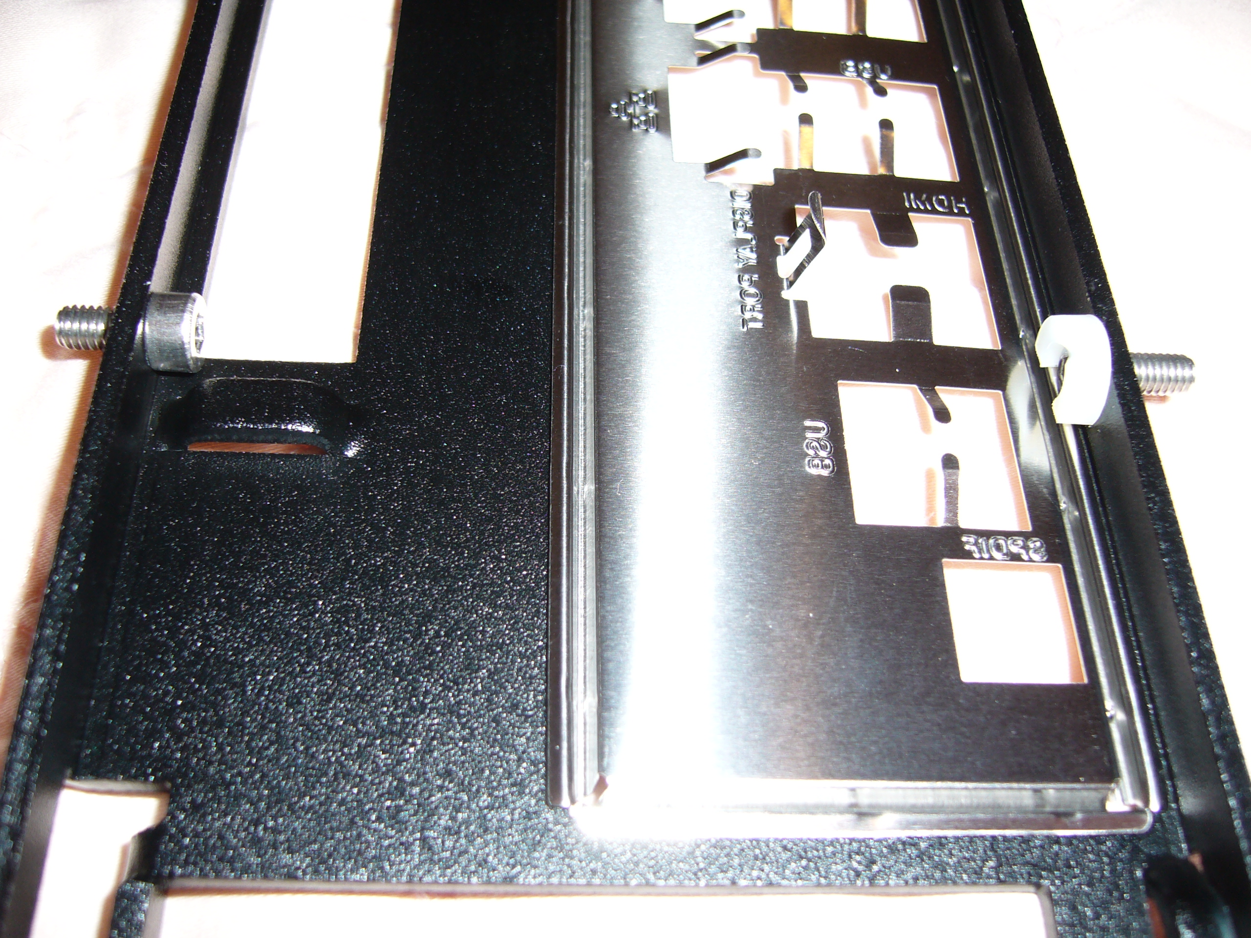 rather clever reversible arrangment that allows you to add handles (useless) or four additional M5 screws. I chose the latter, so this front panel