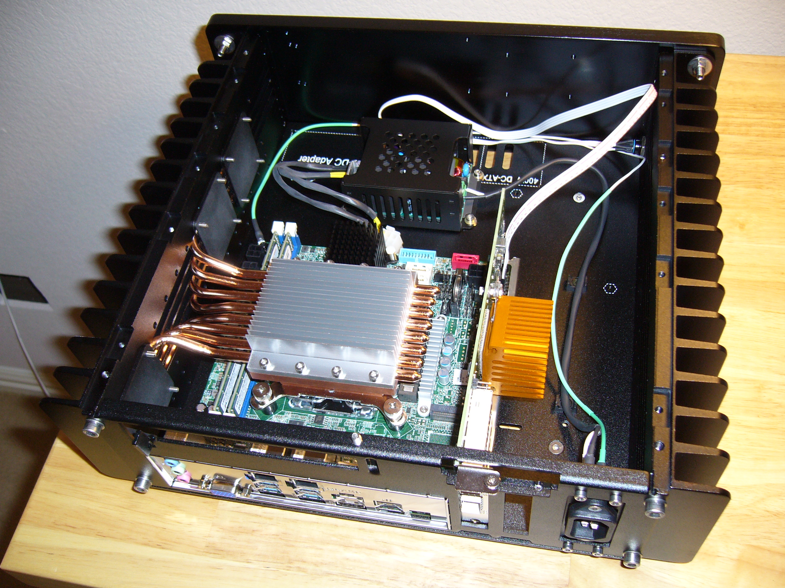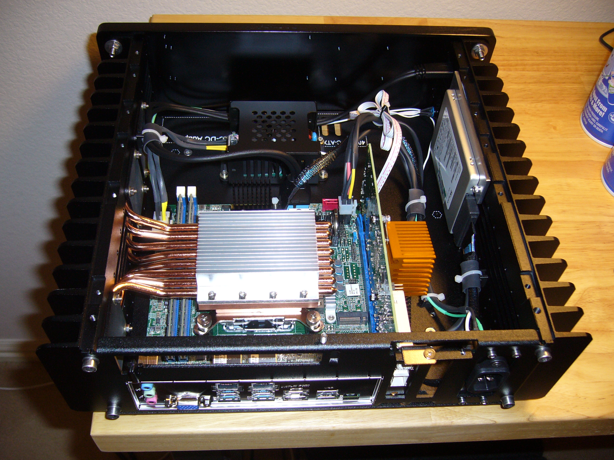 Speaking of tight spaces, look into the upper right corner of the enclosure, at the heat pipe retainer next to the audio jacks... Yep, I wasn't