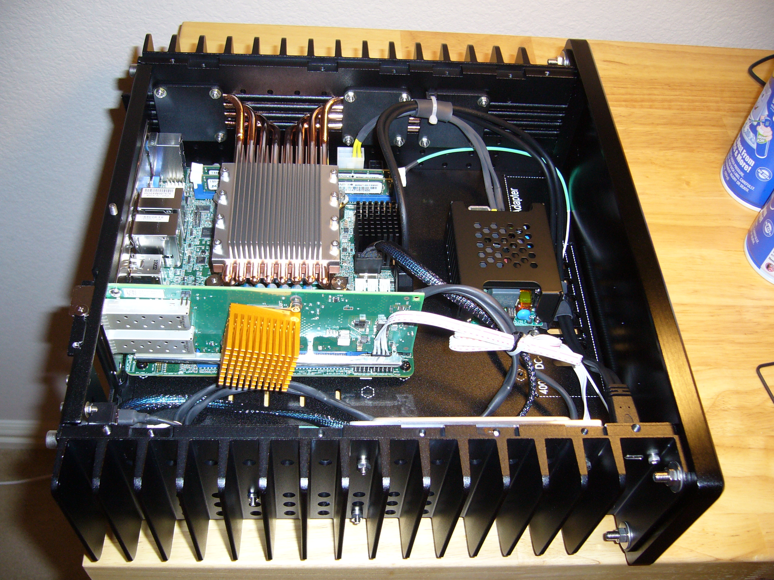 Naturally I had to upgrade the heat sink on the X710 (dual SFP+ 10Gb Ethernet). I chose the smaller gold Zalman due to space limitations, and I'm