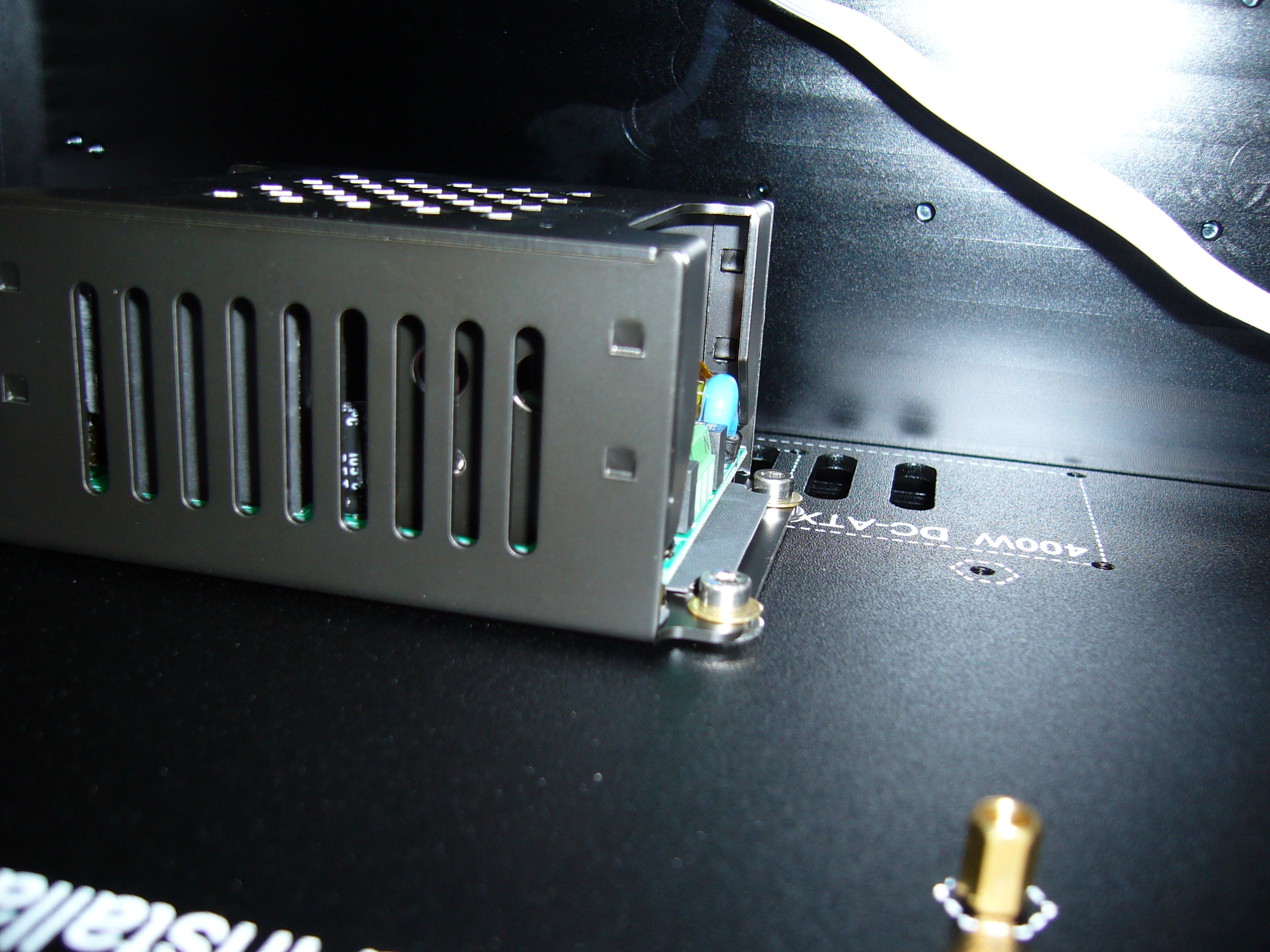 Oh, and I drilled the holes for the power supply. Only three, as I borrowed one existing hole.